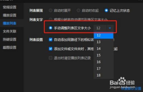 5、在【播放列表】选项卡里面有一个列表文字【手动调整列标签文字大小】的勾选项,默认是不勾选的