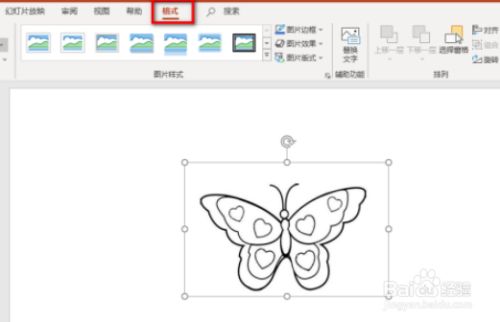 4、接着选中图片,点击格局选项卡;
