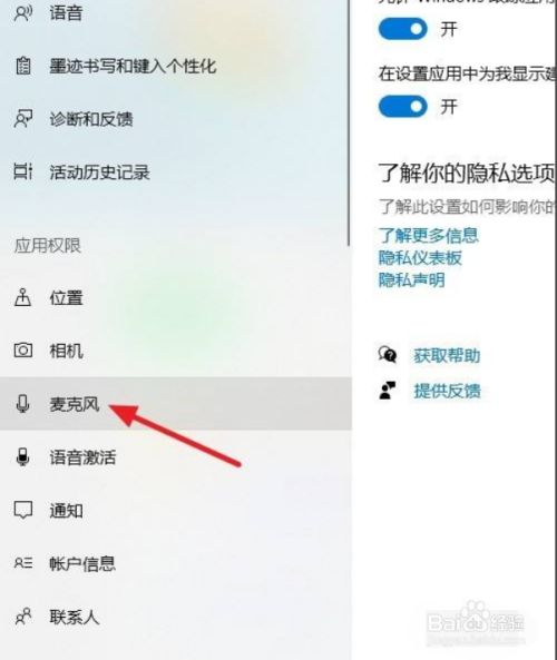 点击窗口左边【应用权限】下的【麦克风】。