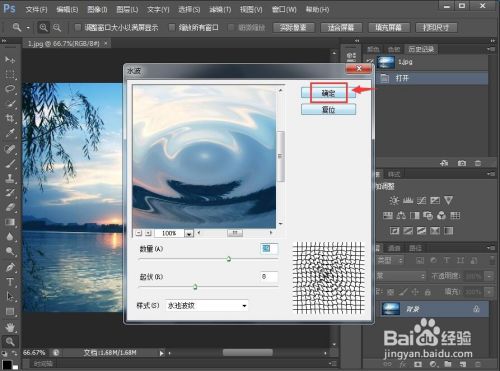 设置参数,将数目设为29,升沉设为8,样式设为水池波纹,按确定;