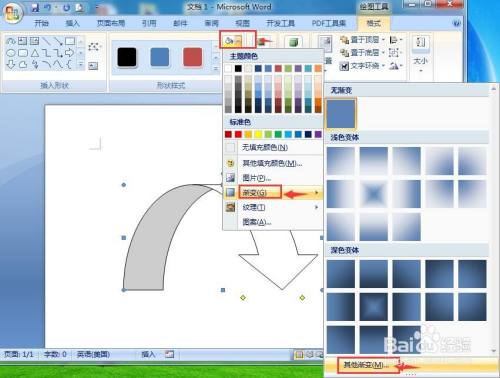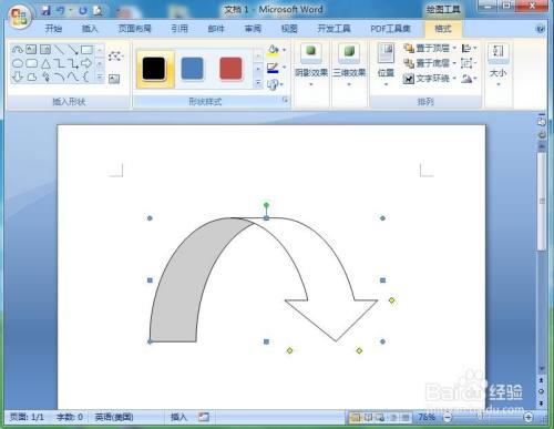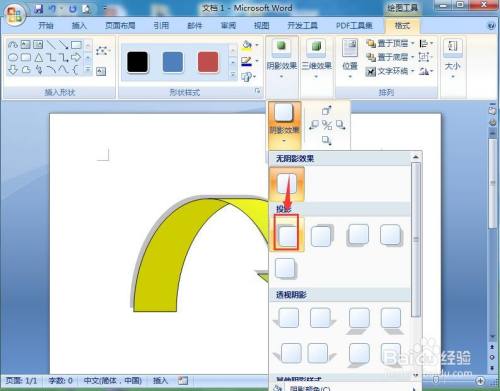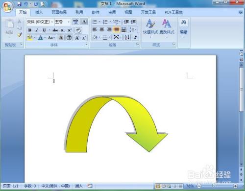 我们就在word中建立了一个带暗影的黄绿渐变上弧形箭头。