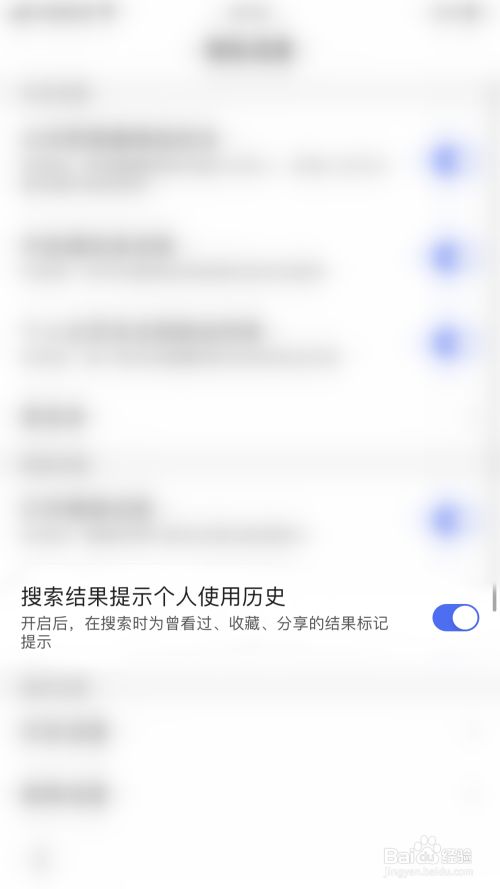 隐私设置界面点击”搜刮成果提醒小我利用汗青“后面的圆点