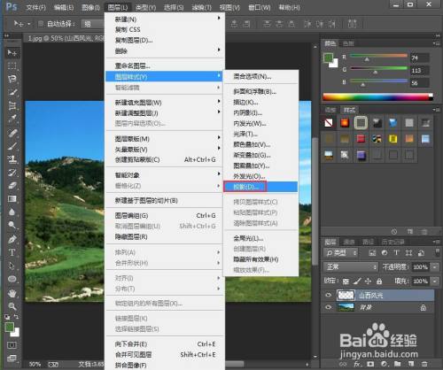 点击图层,选择图层样式下的投影;