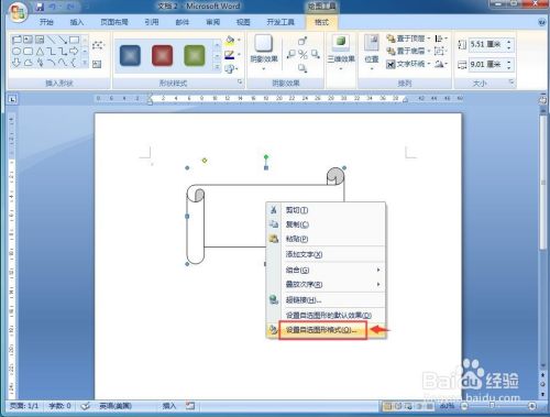 在横卷形上面按右键,选择设置自选图形格局;