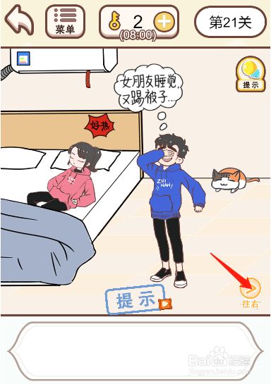 工具/原料vivoS安卓3方式/步骤1首先我们点击图示位置的按钮将画面切换到右边2然后打开房间里面的柜子3接着拿到柜子里面的空调遥控器4之后再切换回左边的场景5然后给女伴侣盖上被子6随后顿时用空调遥控器打开空调即可顺遂过关END
