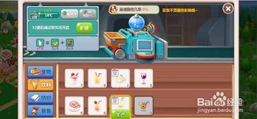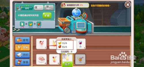 点击喷鼻蕉苹果汁,可以看到出产出一份这样的饮料需要六份喷鼻蕉和六份苹果;