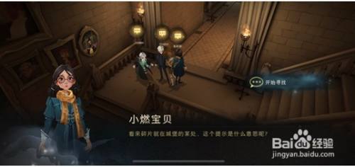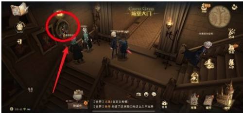碎片的位置在霍格沃茨会堂的门口,要从在城堡达到会堂门口,如图标识表记标帜点就是需要寻找的线索,点击它即可获得拼图碎片;