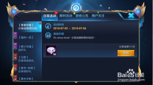 王者荣耀游戏里面有活动是分享战绩之后就可以获得50颗钻石,该活动的活动时间是7月2日到7月6日,在这期间分享即可获得钻石。很多朋友可能不知道怎么操作,跟着小编一起来操作吧。