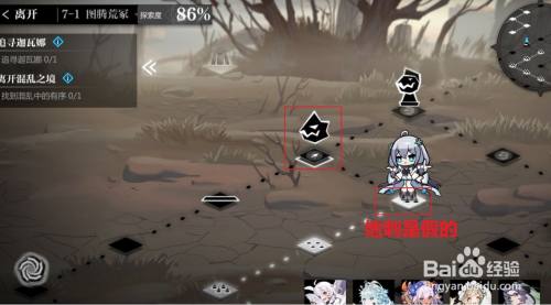 进入到魂灵潮汐的游戏中,并进入到关卡7-1中,先拿宝箱,再去柱子图腾,这个图腾这里有怪物要打。