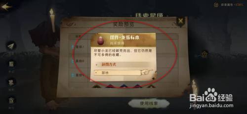 可查看到当通关“丹尼尔的抉择”8星级及以上线索禁林是,有几率失落落获得“摆件-龙蛋标本”道具奖励。