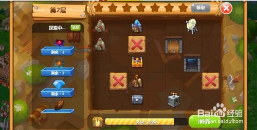 用同样的方式,将所有矿石和宝箱开采出来,直到左边所有材料的残剩数目显示为0;