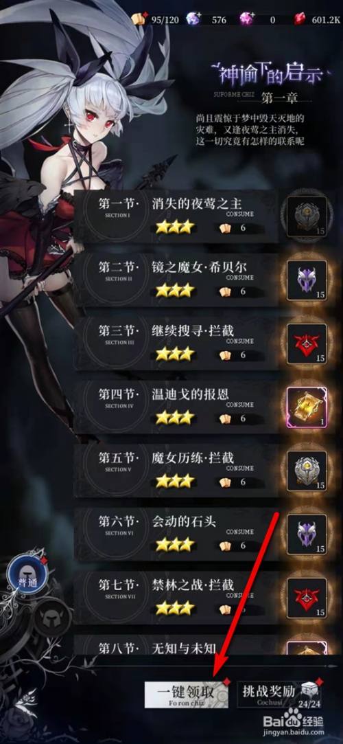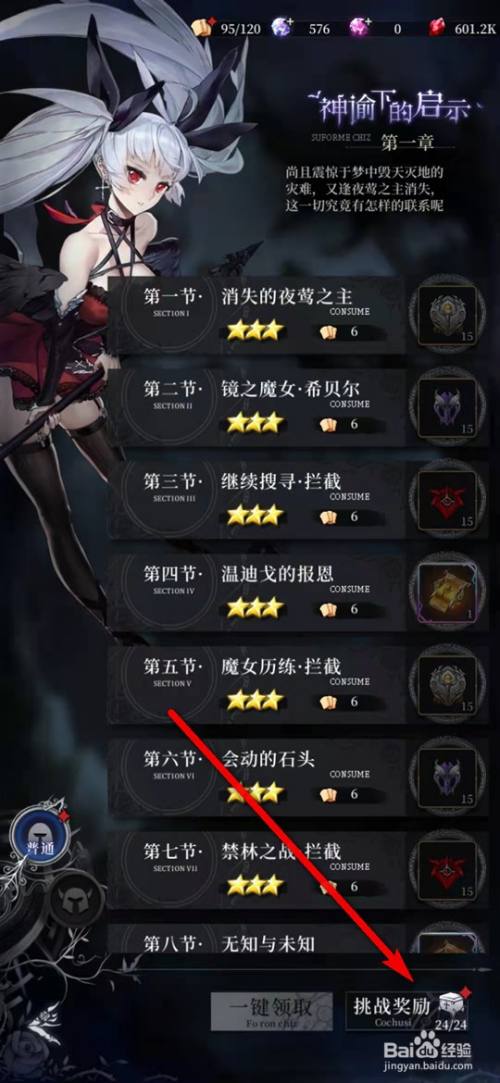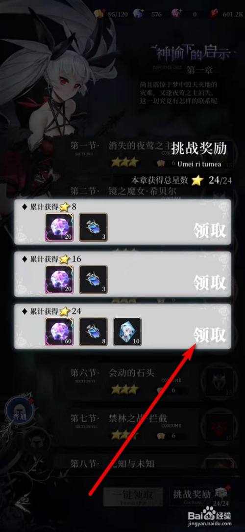 该章节下每一关卡通关都可最多获得3颗星,累计星星数目别离告竣8颗、16颗及24颗时即可点击“领取”获得对应挑战奖励。