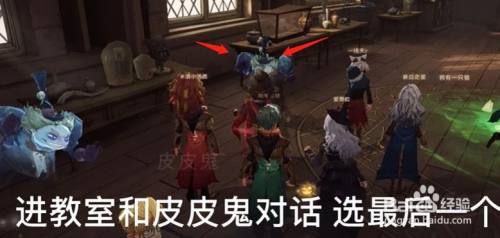 2、来到黑魔法防御课教室,点击皮皮鬼对话,在对话时代选项选择第三个,然后起头战斗。