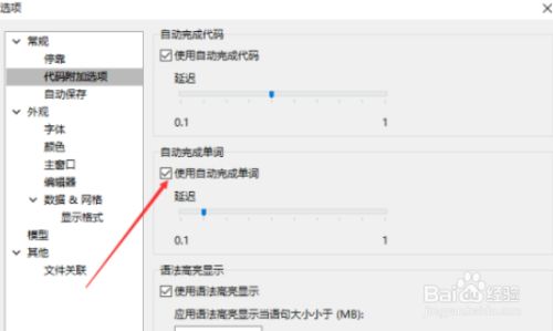 5、进入到了代码附加选项界面中,去失落 利用主动完当作单词 选项勾选