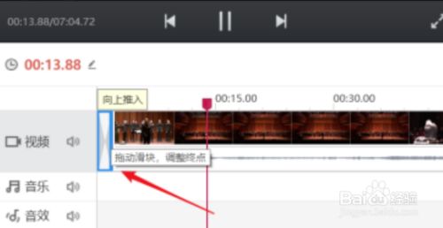 2、将鼠标移动到添加完当作的转场结果,如下图所示拖动滑块,调整转场结果的终点。