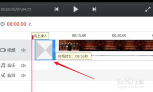 5、点击选定视频后面的转场结果,然后利用不异的体例调整转场结果的时长。
