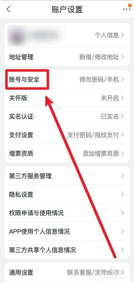随后在账户设置里点击账号与平安进入。