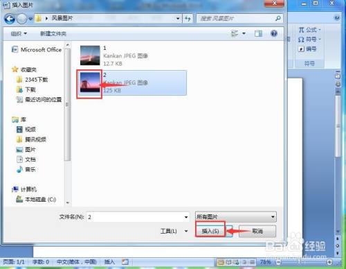 选中一张需要加工的图片,按插入;