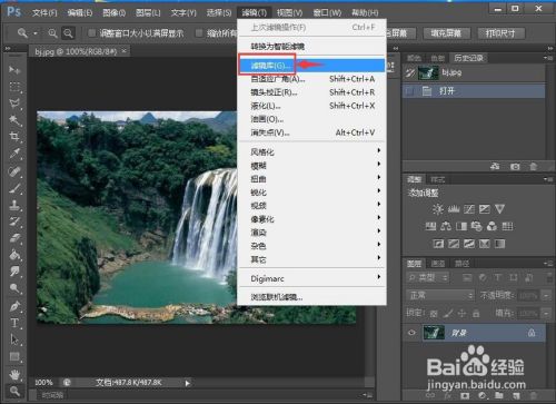 点击滤镜菜单,选择滤镜库;