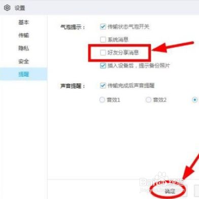 5、在右侧窗口,【气泡提醒】选项组下,找到【老友分享动静】选项,该选项已经被勾选