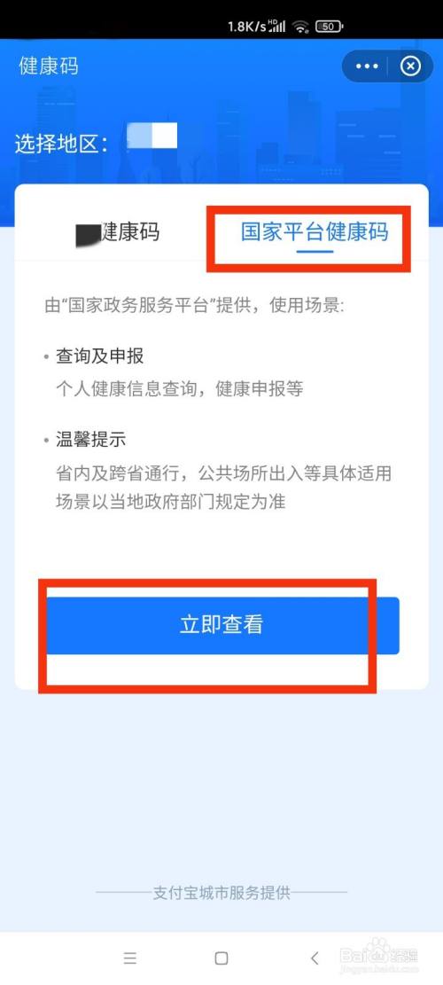 选择国度平台健康码,点击当即查看。
