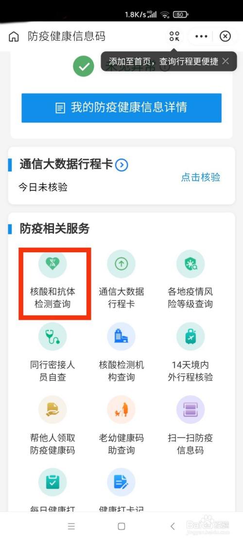 选择防疫相关办事,点击核酸和抗体检测查询。