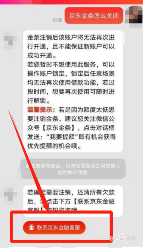 第四步、进入客服界面之后,输入怎么封闭京东金条,然后点击下方的联系京东金融客服