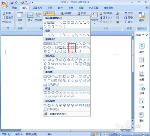 点击插入,选择外形东西中的齐心圆;