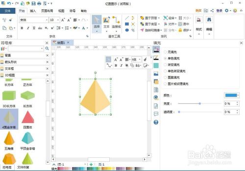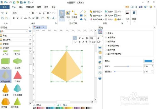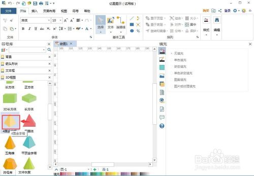 2、进入3D框图符号库中,将四面金字塔拖放到编纂区;