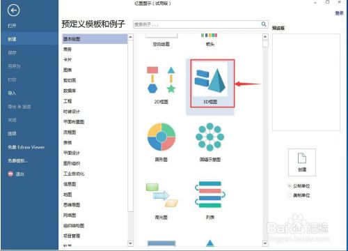 1、打开亿图图示,在根基画图中双击3D框图;