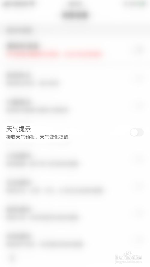 ”气候提醒“后面的圆点变为灰色即暗示封闭百度气候提醒动静通知当作功