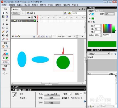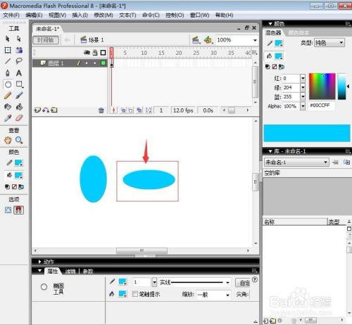 按住鼠标左键不放,在舞台上拖动鼠标,沿上下偏向拉,就可以画出一个纵半轴大于横半轴的椭圆;