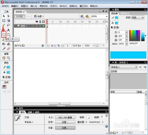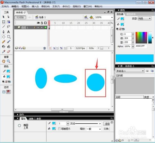 用左手小指按住shift键不放,右手按住鼠标左键,在舞台上拖动鼠标,就可以画出一个尺度的圆形;