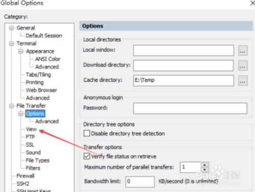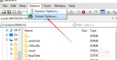 3、点击了options菜单之后,弹出了下拉菜单选中为 global options 选项