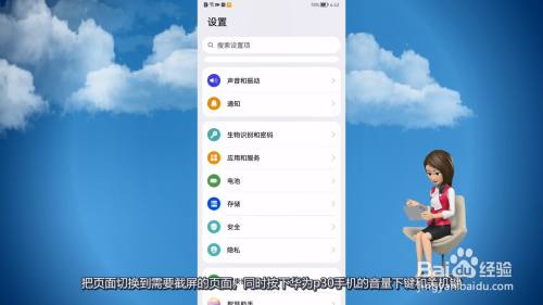 把页面切换到需要截屏的页面,同时按下华为p30手机的音量下键和关机键。