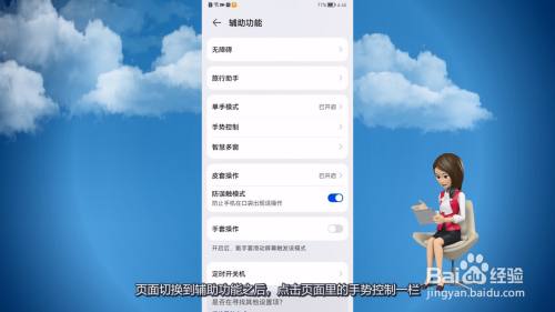 页面切换到辅助功能之后,点击页面里的手势节制一栏。