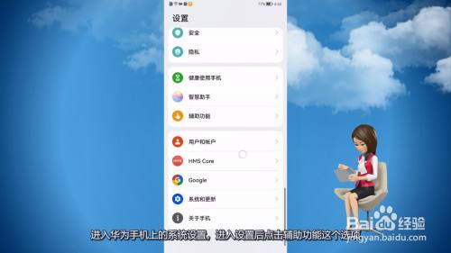 进入华为手机上的系统设置,进入设置后点击辅助功能这个选项。