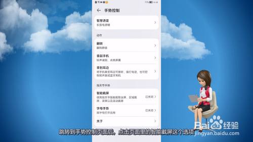 跳转到手势节制页面后,点击页面里的智能截屏这个选项。