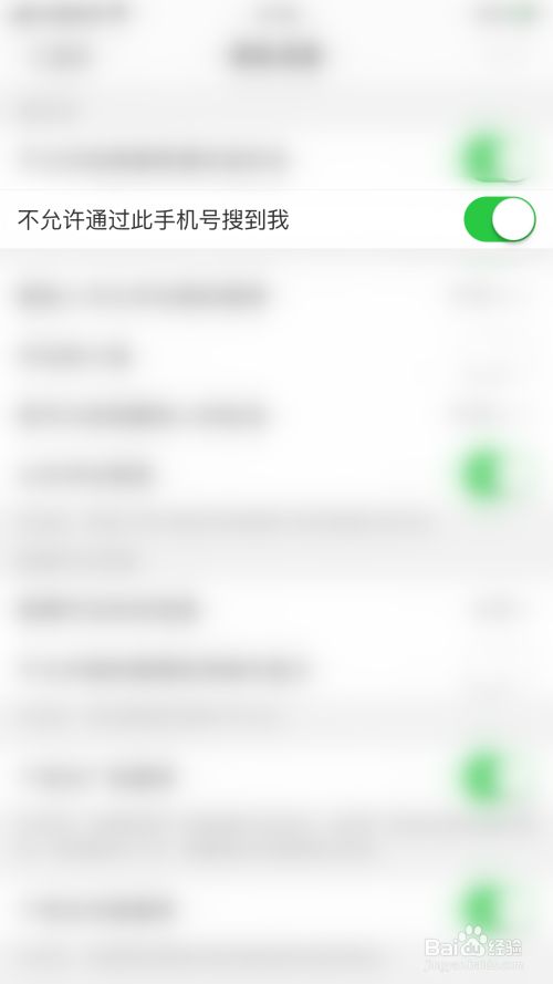 隐私设置界面点击“不许可经由过程此手机号搜到我”后面的圆点