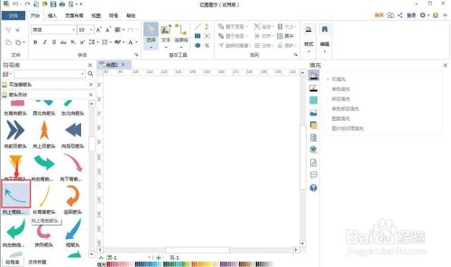 2、进入箭头外形符号库中,找到并双击标的目的上弯曲箭头;