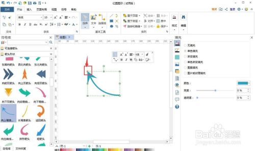 4、调整好标的目的上弯曲箭头的大小和填充颜色。