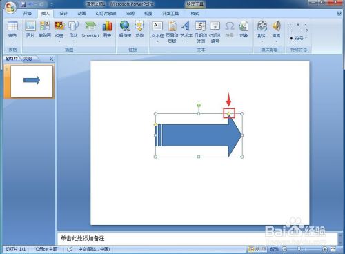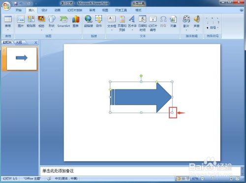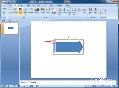 我们就在Powerpoint 2007中建立好了一个虚从头至尾箭头。