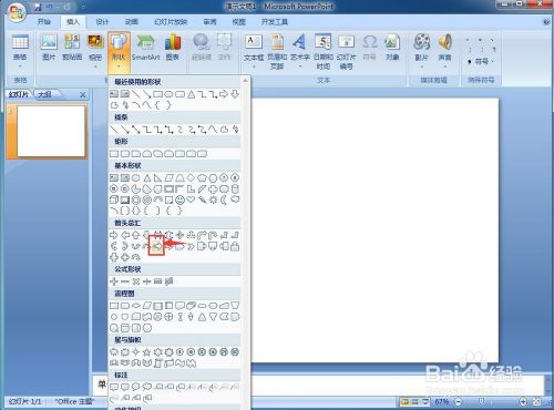 2、点击插入,选择外形;