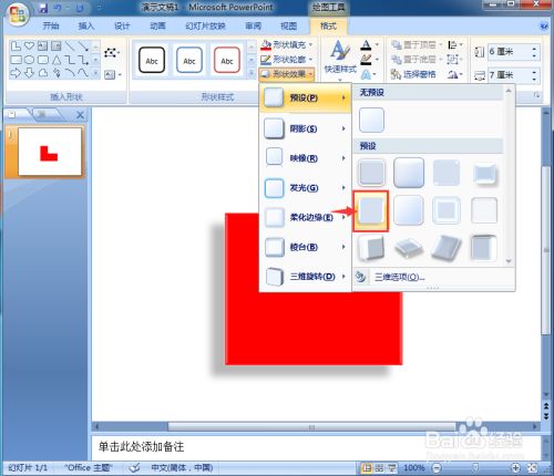 我们就在powerpoint中给L形添加上了红色强烈结果和预设样式。