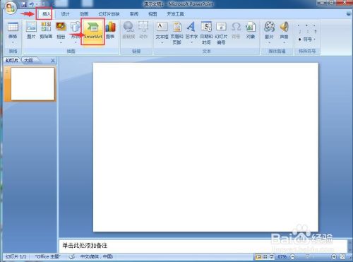 2、点击插入,选择SmartArt东西;