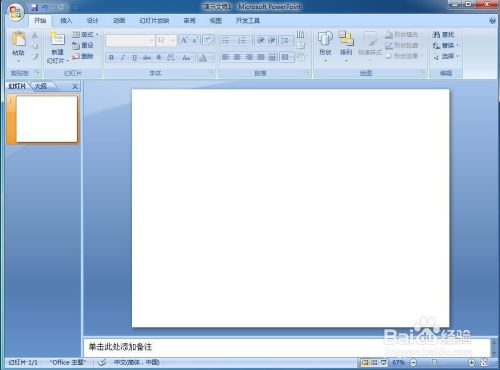 打开Powerpoint 2007软件,进入它的本家儿界面中,