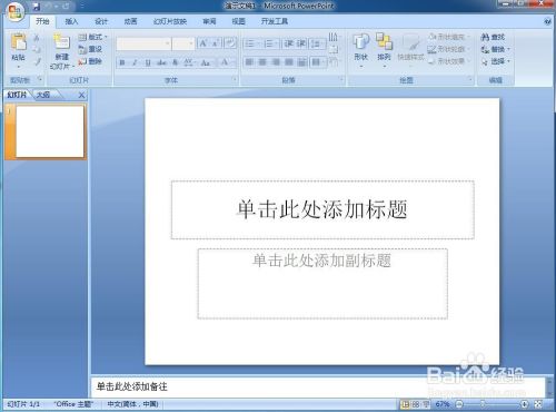 打开Powerpoint 2007软件,进入它的本家儿界面中;