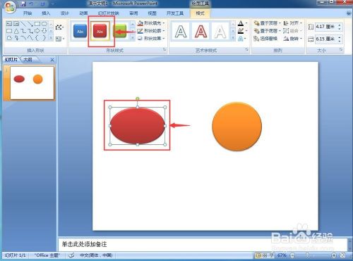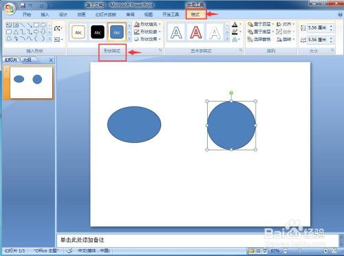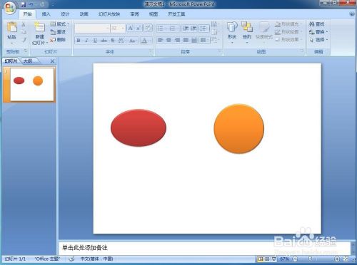我们就在Powerpoint 2007中建立好了一个椭圆和圆形。