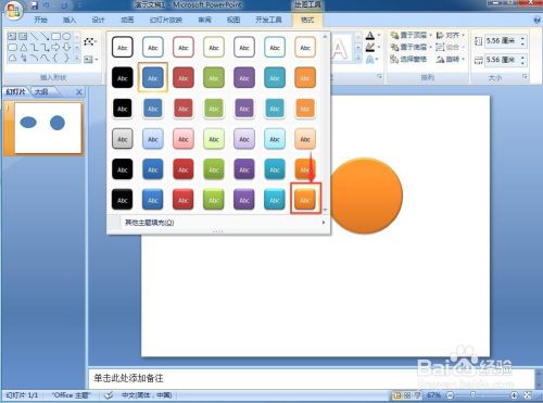 选中圆形,在外形样式中点击添加一种需要的样式;