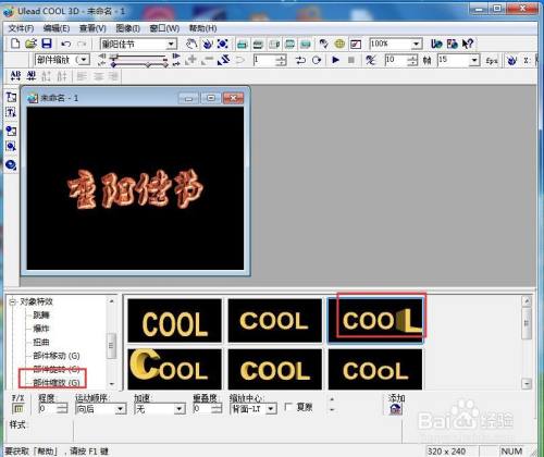 点击对象特效,选择部件缩放,添加一种缩放新式;
